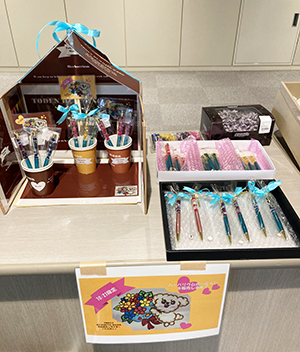 それぞれ、ハミングワークのスタッフが制作やラッピングに関わったおすすめの品々で、中でもハーバリュームボールペンは、横浜事業所に勤務する指導職・スタッフが手作りし、今回が初めての出品となるオリジナル商品です。