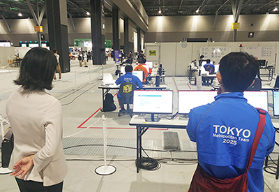 10名の選手が9時のスタート合図で一斉にシステム制作を開始しました。静かな中にも選手たちの意気込みが伝わってくるようで、競技場は終始ピリッとした空気に包まれています。