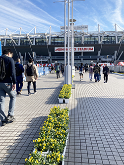 当日、味の素スタジアムの入場口では、晴れやかな秋空の元、プランターに植えられた可愛らしい黄色の花々がお出迎えしてくれました